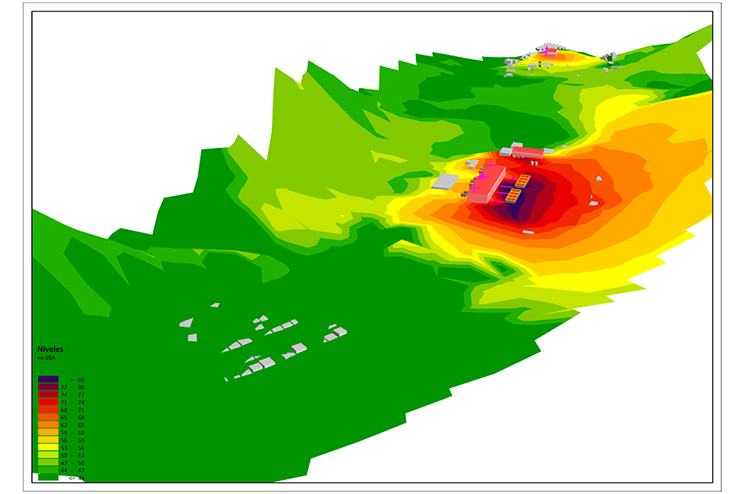 Proyecto: Mediciones de ruido diurnas y nocturnas – mediciones de potencia acústica – levantamiento planimétrico – simulación acústica SoundPlan 8,1 – estrategia de implementación por fases, diseño de soluciones, valorización de implementación.