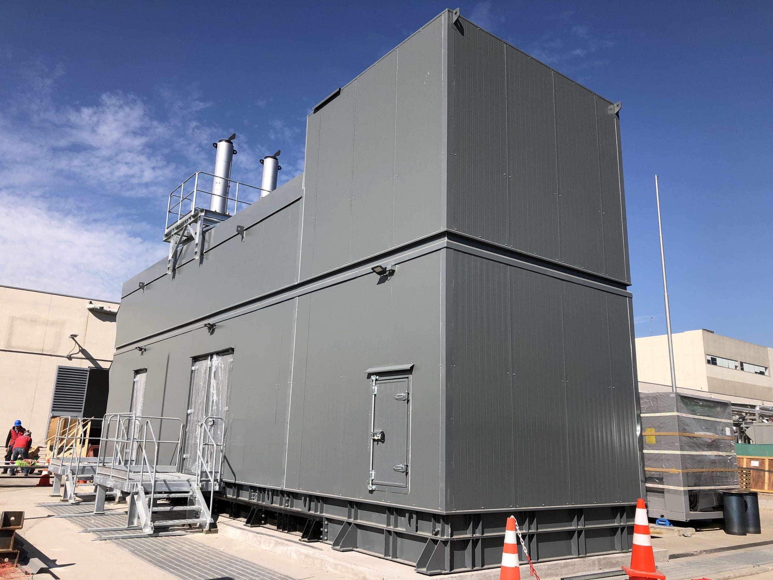 Diseñamos, fabricamos e instalamos en obra 2 cabinas acústicas de alto aislamiento para generadores Cummins C2750 en la ampliación de data center GTD Panamericana. Además, realizamos la instalación de estanques de combustible base UL suministrados por cliente.