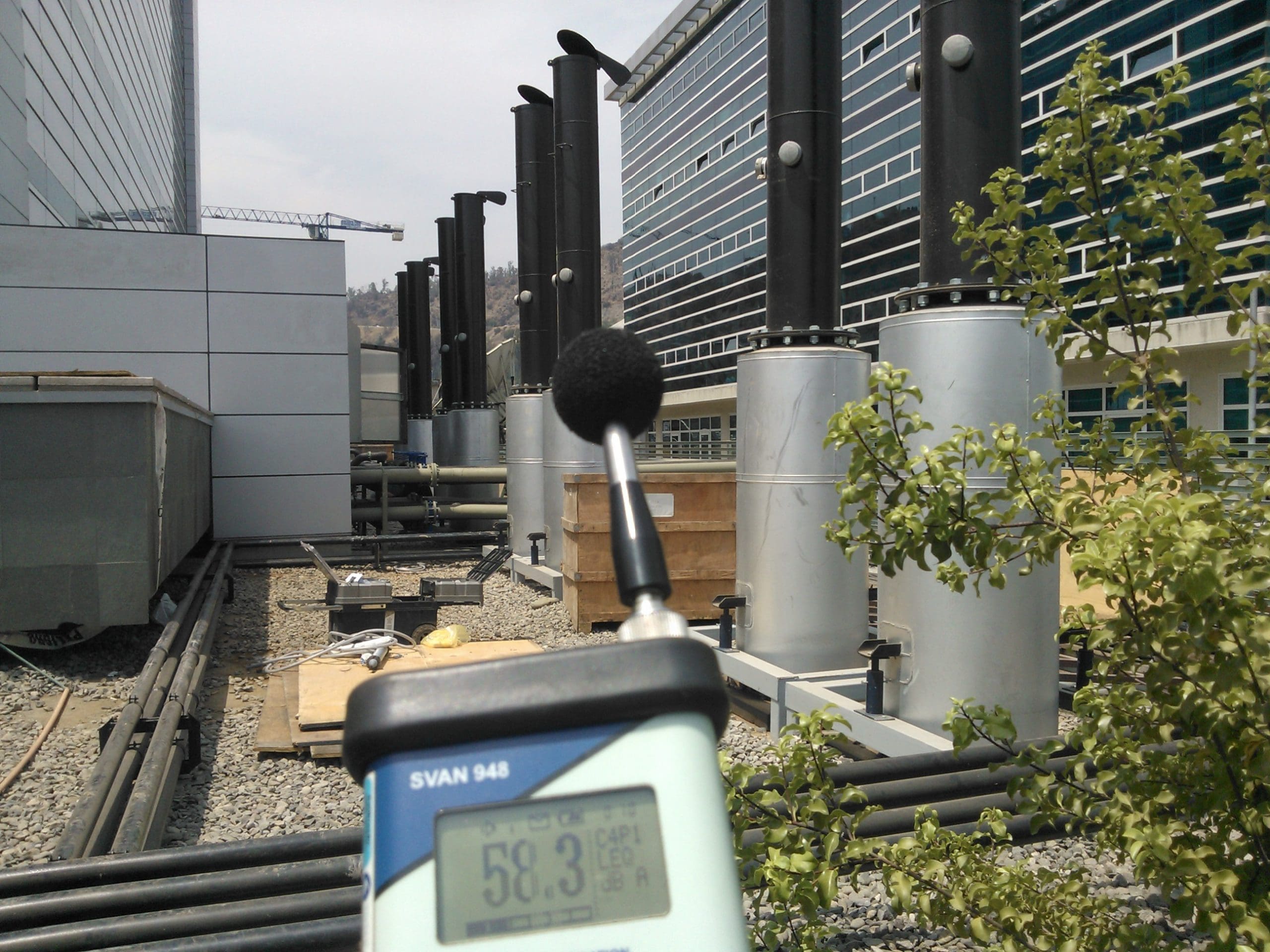 El Edificio Magnus II de Netglobalis ubicado en la Ciudad Empresarial de Huechuraba, Santiago, cuenta con una sala de generación con 4 equipos de 1200 KVA. Silentium desarrolló e implementó la insonorización de esta sala para Finning Chile, diseñada para no superar los 70 dB(A) medidos a 10 m de las descargas de aire. La sala se encuentra ubicada en el subterráneo del edificio. El aire para la ventilación, tomada desde el subterráneo y descargada hacia el exterior, está insonorizada por atenuadores splitter del tipo ADR-M. Los escapes de gases cuentan con silenciadores grado hospital.